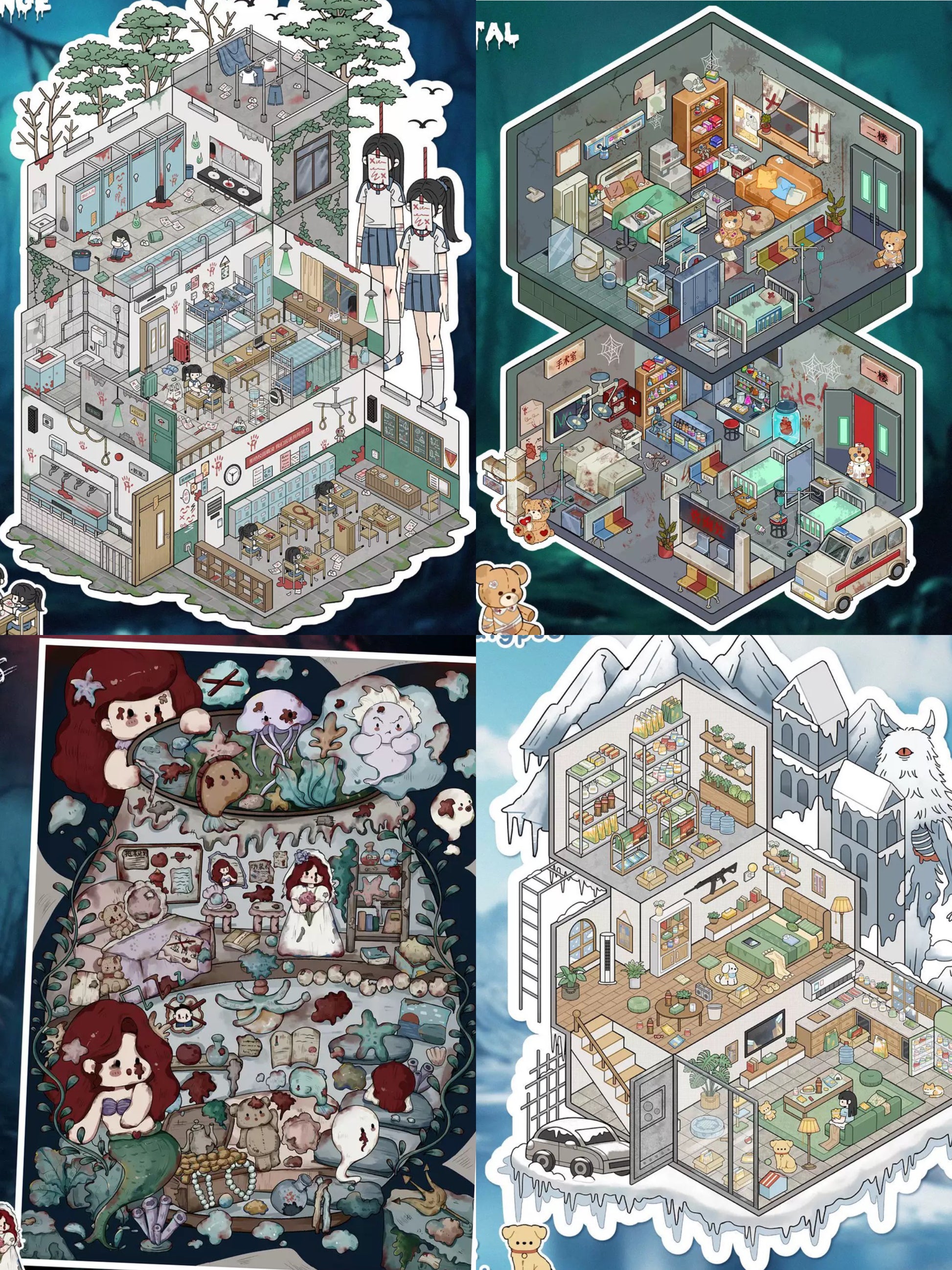 Landscaping stickers, slight fear, large scene stickers, 3D three-dimensional stickers, DIY decompression notebook stickers